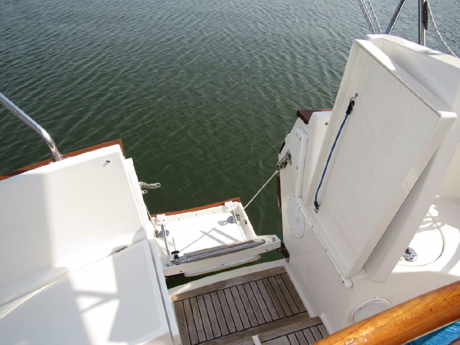 Drop-down swim platform